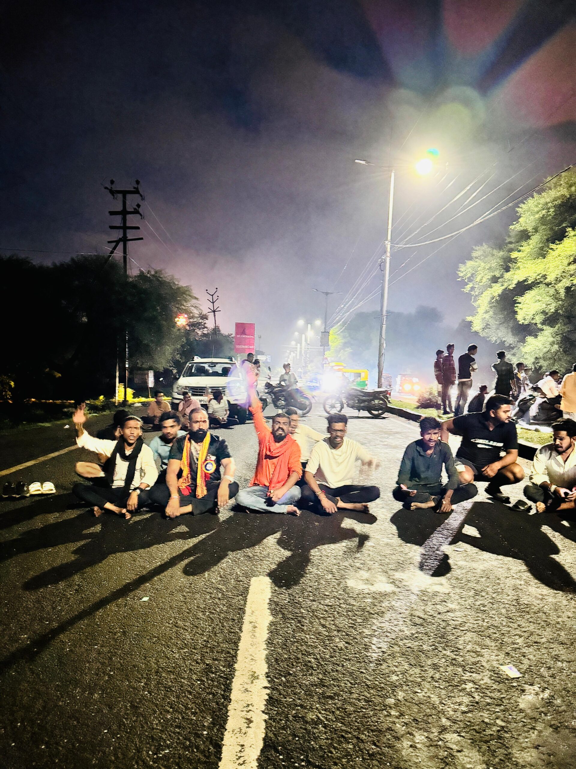 अंतर्राष्ट्रीय हिंदू परिषद राष्ट्रीय बजरंग दल महानगर की टीम ने आज बहुत ही आक्रोश में अयोध्या बाईपास पर धरना प्रदर्शन किया जिसका उद्देश्य था गौरक्षा l एक मुसलमान व्यक्ति अपनी गाड़ी से एक गौ माता को जानबूझकर टक्कर मार के भाग रहा था मौके पर महानगर महामंत्री करण सैनी और हिंदू हेल्पलाइन अध्यक्ष मोहित पवार ने देखा और उसका पीछा किया पर वह फरार हो गया उसके एवज में करण सैनी ने अंतर्राष्ट्रीय हिंदू परिषद राष्ट्रीय बजरंग दल की पूरी टीम को रात्रि 1:00 बजे सूचित किया और करीबन 200 से 250 कार्यकर्ताओं के साथ पुरी रोड को जाम कर दिया जिसमें महानगर अध्यक्ष सोनू हिंदू ने मांग रखी कि हमारे करीबी थाने में एक एंबुलेंस और एक गौ रक्षक वाहन दिया जाए जिसको प्रशासन में स्वीकार किया और 15 दिन के अंदर लाने की बात कही मौके पर छात्र परिषद अध्यक्ष अभिराज ठाकुर एवं हिंदू हेल्पलाइन उपाध्यक्ष हरिओम पवार ने सहयोग किया।
