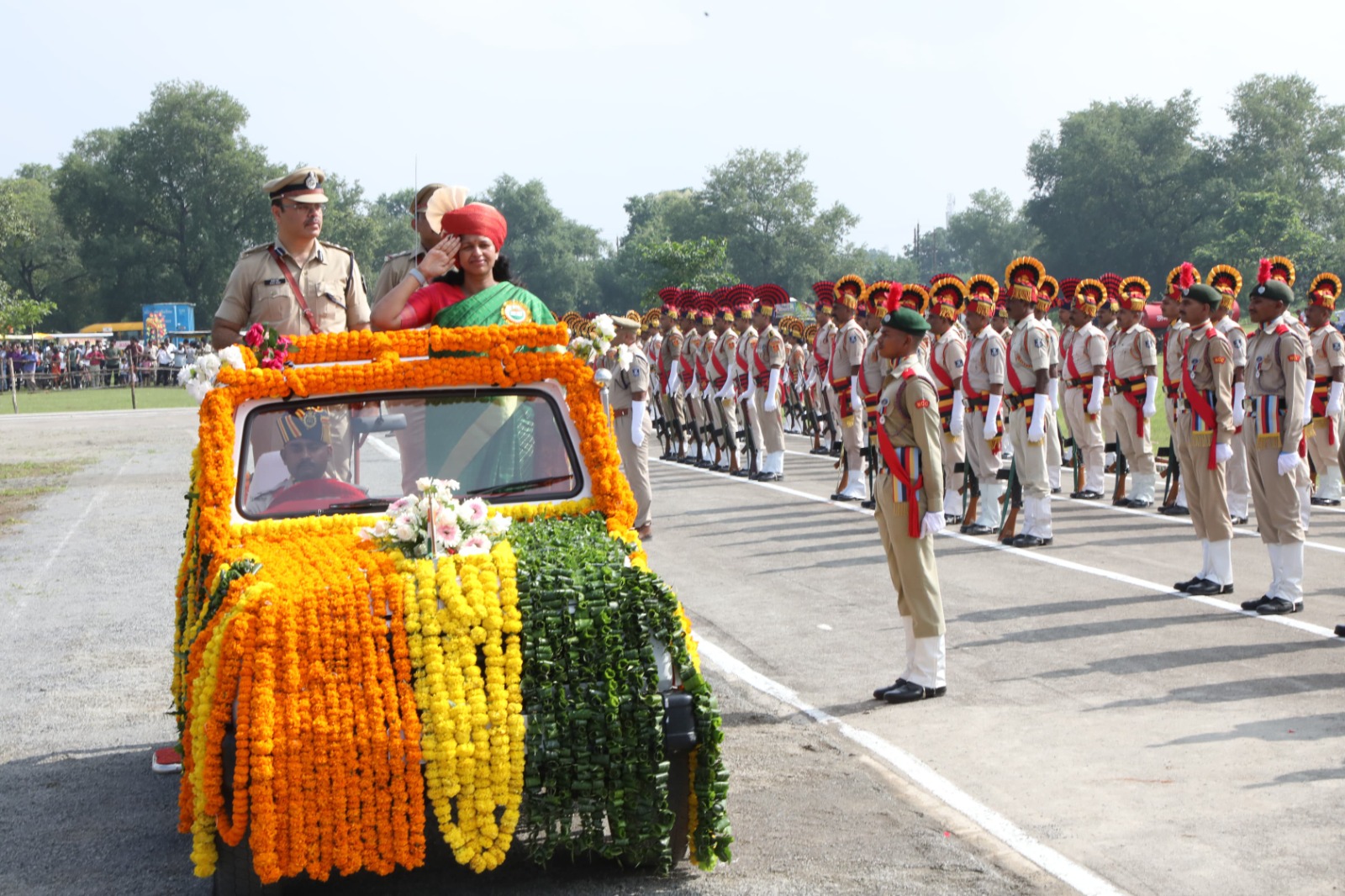 समारोह में कलेक्टर प्रतिभा पॉल ने ध्वजारोहण करके परेड की सलामी ली